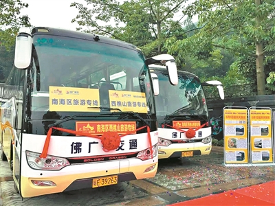 今年4月以來,佛山市南海區(qū)客運企業(yè)佛廣集團(tuán)先后開通了由廣州市潯峰崗地鐵站出發(fā)直達(dá)佛山市南海影視城、夢里水鄉(xiāng)百花園,以及從廣州市龍溪地鐵站出發(fā)直達(dá)佛山市西樵山的旅游專線,從而方便了廣州市民可以直接從市內(nèi)地鐵出發(fā)到佛山的旅游景區(qū)游玩。最近,這種旅游專線又新增了一條從佛山市南桂路地鐵站附近出發(fā),前往廣州市花都旅游景點的線路。