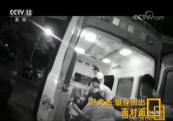 尹文杰:沒有想過,我只是感覺我確實在流血,血流得比較多,沒有想到我的傷會很嚴重,所以我還是必須要把他制服,把他抓住。因為可能那個時候,我再多拖一分鐘的話,就會有路人幫我求救,就會有民警趕過來,所以我必須要多拖住他一會兒。