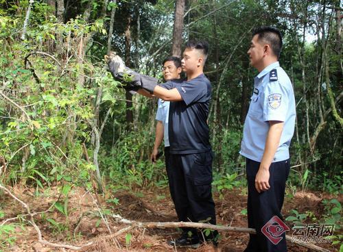 7月9日上午,曼稿派出所民警在勐??h步行街開(kāi)展“掃黑除惡”專項(xiàng)斗爭(zhēng)入戶宣傳動(dòng)員暨打擊非法獵捕珍貴瀕危野生動(dòng)物專項(xiàng)行動(dòng)宣傳工作時(shí),嘉信物業(yè)的保安陳冬電話報(bào)警稱,他和同事昨晚?yè)斓揭恢弧肮著B(niǎo)”,請(qǐng)森林公安來(lái)接收。