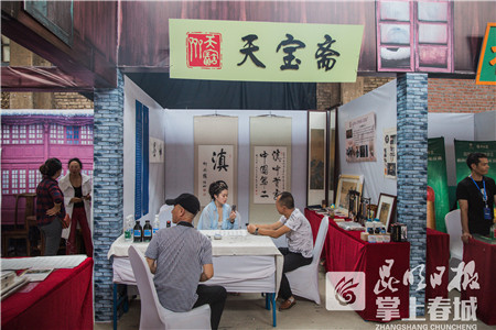 此次的老字號老品牌聯(lián)展區(qū)不僅有井氣息濃郁的昆明滋味,又有頗具情懷的歷史氛圍與文化韻味。開展期間,由云南紅云紅河集團(tuán)、云紡集團(tuán)、昆明精益眼鏡、云南鴻慶號茶業(yè)、云南云子文化、天寶齋墨業(yè)、老倆口豌豆粉、天臺羊泉腐乳、楊林肥酒、中輕依蘭、寶翰軒、王子榮祖?zhèn)鳠o敵中醫(yī)館、云南鹽業(yè)、騰藥等12家老字號企業(yè)組成的老字號老品牌聯(lián)展(昆明老字號綜合市場),在綠皮墻、木墻、復(fù)古牌匾等老昆明元素的映襯下,真實還原了昔日老昆明市場的風(fēng)采。