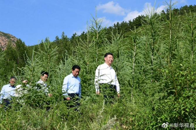 15日下午,習(xí)近平總書記來到內(nèi)蒙古赤峰市喀喇沁旗馬鞍山林場考察。沿著崎嶇的護(hù)林小道,習(xí)近平步行進(jìn)入林區(qū)察看林木長勢,同正在作業(yè)的護(hù)林員們親切交談,了解林場建設(shè)發(fā)展情況。大家告訴總書記,現(xiàn)在生態(tài)好了,在上山巡護(hù)的時(shí)候,時(shí)常碰到狍子、野兔、山雞、野豬等野生動(dòng)物,來旅游的人也多了,山野菜不愁賣了,山貨也特別多,老百姓切切實(shí)實(shí)得到了好處,更加深刻地認(rèn)識(shí)到綠水青山就是金山銀山。習(xí)近平對大家說:“護(hù)林員很重要,種樹多不容易??!建設(shè)祖國北方和首都生態(tài)安全屏障是戰(zhàn)略性的任務(wù),是我們要世世代代做下去的事情?!?/p>