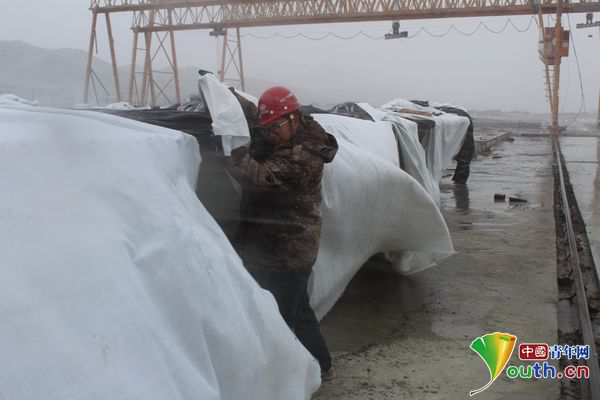 “想知道外面的風(fēng)速有多大?對不起,能抵御12級強風(fēng)的測風(fēng)儀已經(jīng)被吹壞了。想知道外面有多冷?對不起,從黑龍江運過來的鍋爐竟承受不了嚴(yán)寒,罷工了。想知道雪有多大?對不起,雪已經(jīng)把門口堵住了。”中鐵二十五局第二工程有限公司京新高速項目部黨支部書記陳佩這樣調(diào)侃道。