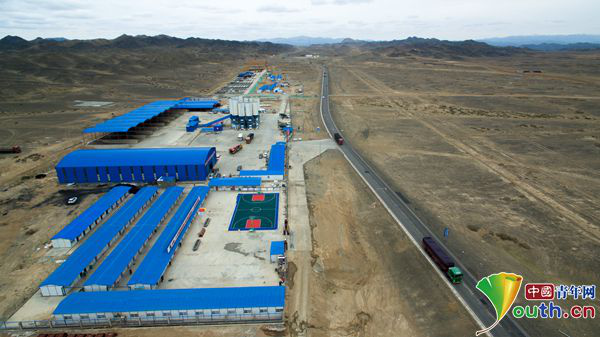 24公里的路段,穿越茫茫的無人區(qū)和戈壁灘,項目部駐地在海拔約2000米的戈壁灘上,距離最近的城鎮(zhèn)也要近200公里。在這里,高溫、嚴(yán)寒、狂風(fēng)肆虐;在這里,喝上一口甘甜的水,吃上一口新鮮的飯菜,也成為一種奢望。