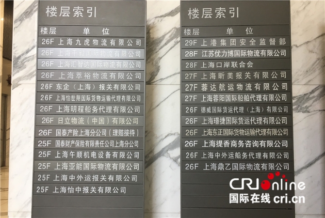 北外灘上海國際航運(yùn)中心樓層索引,大批中外航運(yùn)企業(yè)已入駐其中。攝影 謝詩佳