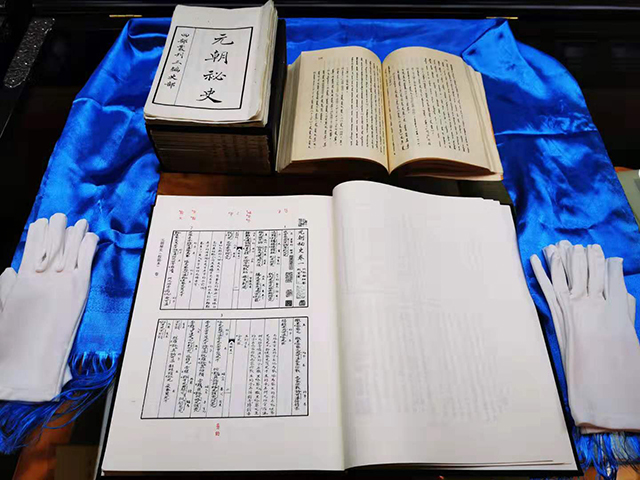△《元朝秘史》,原名《蒙古秘史》,主要記錄了蒙古族形成、發(fā)展、壯大的歷程,這是蒙古族最早的、最完整、史料價值最高的文獻。該版本是清代顧廣圻校本影印,為十五卷本。(央視記者荊偉拍攝)