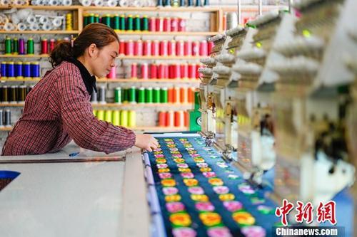 資料圖:貴州省雷山縣易地扶貧搬遷安置小區(qū)牛王寨一家刺繡加工廠。中新社 記者賀俊怡/攝