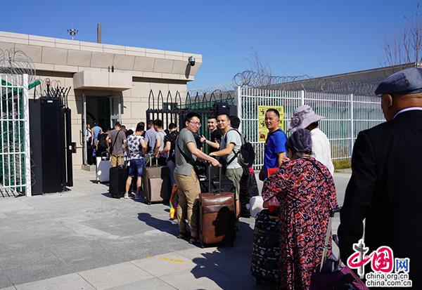 2019年6月28日,在霍爾果斯口岸,客商排隊(duì)等待過(guò)境回國(guó)。中國(guó)網(wǎng)記者 董小迪/攝