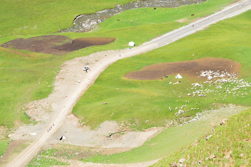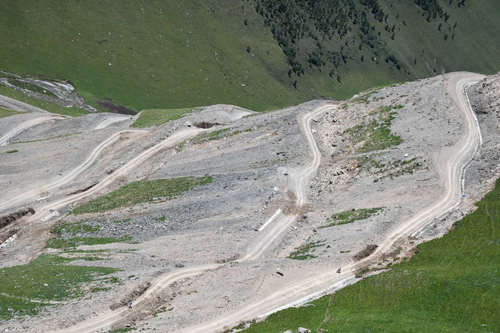 通過近3個月的加緊施工,于同年9月28日修通了這條路。整條路山石犬牙交錯,曲折多彎,全在海拔2600米以上繞來繞去。整個達愣達坂由近七十個大小達坂組成,僅一個莫西干達坂就有近70度的坡度,垂直高度近1600米,達坂頂子上,海拔近4500多米,上下大坂30多公里,有六十幾道回頭彎。路通的那天,牧民們像過那達幕節(jié)一樣,舉辦了小型慶?;顒?。因為此路上有70個達坂,牧民們給這條路起了個名字叫達愣達坂路。達愣達坂沿途有個金光牧場,跨過的幾條開都河支流又都有砂金,所以牧人們也叫它“金光大道”。