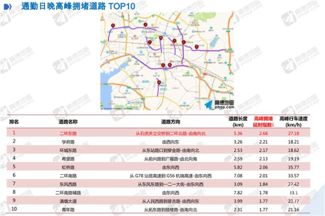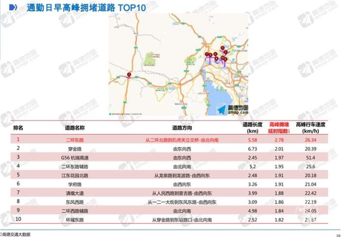 昆明在全國(guó)二季度堵城排行榜中位列第23位。昆明市二季度交通健康指數(shù)72.08%,六項(xiàng)指標(biāo)有五項(xiàng)高于50城市均值,高峰平均速度相比其它指標(biāo)表現(xiàn)較差,常發(fā)擁堵路段里程比相對(duì)較好。昆明市二季度高峰擁堵延時(shí)指數(shù)1.692,即高峰出行時(shí)間是暢通狀態(tài)下的1.692倍,高峰平均行車速度24.16km/h。4月?lián)矶伦顕?yán)重,高峰期擁堵延時(shí)指數(shù)1.72,高峰期城市平均行車速度23.9km/h。