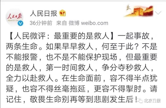 正如@人民日報針對南四環(huán)車禍事件發(fā)表的評論中所說:最重要的是救人!