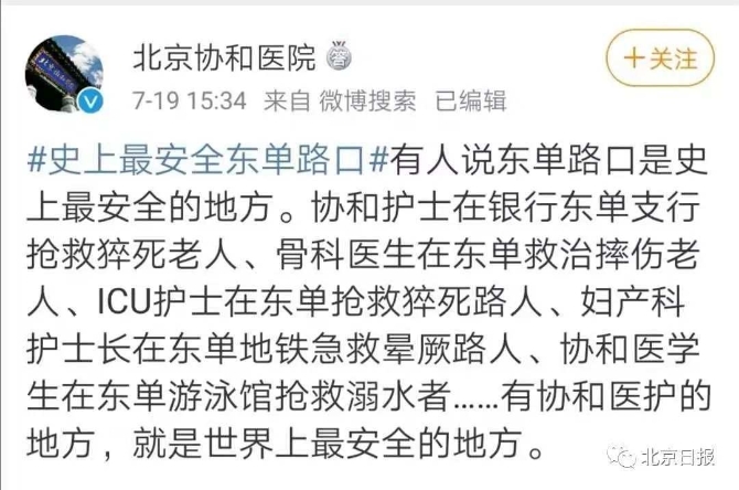 很多人還有印象,今年3月,六名醫(yī)生下班后在東單體育館,聯(lián)手將心臟驟停的一名球友救了回來,送到附近的同仁醫(yī)院后,患者轉(zhuǎn)危為安。后來,患者給醫(yī)務(wù)人員伸了一個(gè)大拇指點(diǎn)贊!這次,網(wǎng)友再次驚嘆:以后遛彎就圍著協(xié)和了。致敬醫(yī)者仁心!