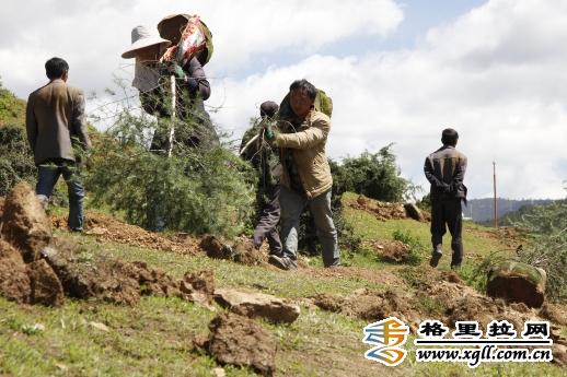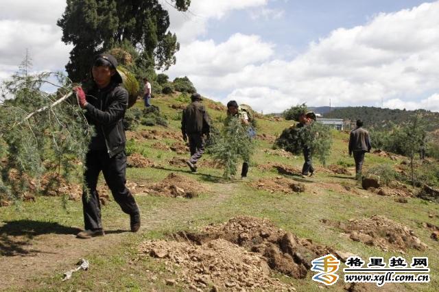 “每一顆樹苗我們都精心栽種,養(yǎng)護(hù)期為三年,并確保當(dāng)年成活率95%以上,次年保存率90%以上,第三年保存率85%以上。沿著山脊種植櫻花,其他地方種植雪松,等明年櫻花開放,這里將是香格里拉一道亮麗的風(fēng)景?!被ɑ芄鞠嚓P(guān)負(fù)責(zé)人介紹。