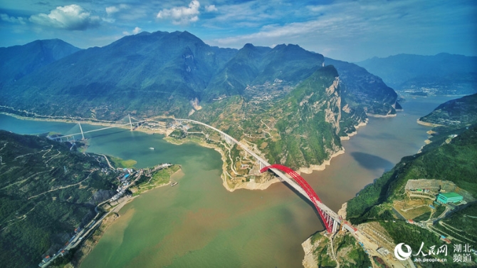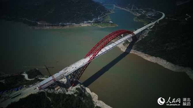 秭歸長江大橋橋身全長883.2米,主跨531.2米,是一個由多座特大型橋梁、隧道及大型滑坡處治組成的項(xiàng)目群,主橋跨長江,附橋跨香溪河,路線全長5.4公里,總投資21億元人民幣。作為鋼箱桁架推力拱橋,該橋跨度全球第一,凈空高度亞洲第一。