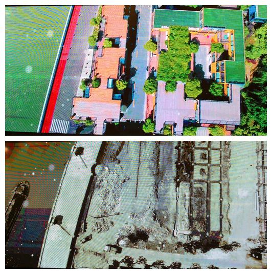 智慧灣科創(chuàng)園園區(qū)改造后(上)和改造前(下)對(duì)比圖。(園區(qū)供圖)