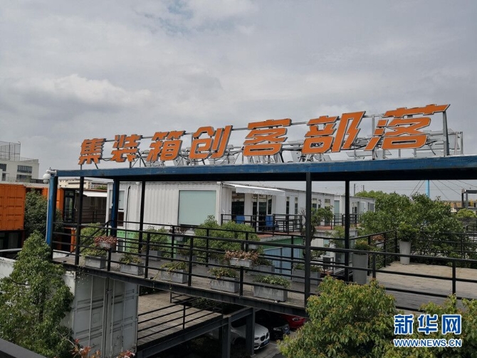 智慧灣科創(chuàng)園園區(qū)內(nèi)的集裝箱創(chuàng)客部落。 新華網(wǎng)劉夢(mèng)姣 攝
