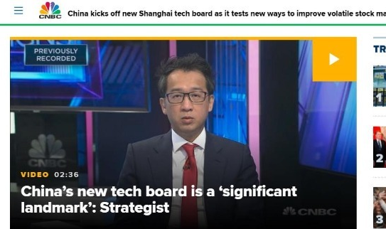 美國CNBC網(wǎng)站7月22日報道,中國推出了類似納斯達克(Nasdaq)的新科技板塊——科技創(chuàng)新板(Science and Technology Innovation board,STAR),首批共有25家公司在該板塊上市。