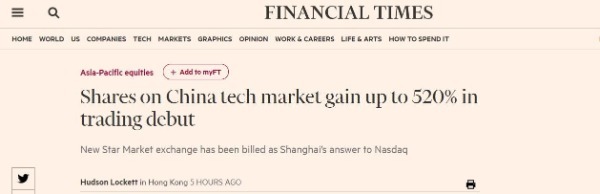 英國《金融時報》報道,與上交所和深交所的主板不同,在科創(chuàng)板上市無需政府審批,在吸引科技公司上市方面,科創(chuàng)板在中國是獨一無二的,包括允許未盈利企業(yè)、同股不同權(quán)企業(yè)發(fā)行上市,這可以讓創(chuàng)始人保留對企業(yè)運營的控制權(quán)。