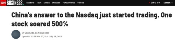 美國有線電視新聞網(wǎng)(CNN)7月22日報道,中國宣布將推出科創(chuàng)板至7月22日科創(chuàng)板開市,僅歷時8個月。根據(jù)上海證券交易所的數(shù)據(jù),已有100多家公司申請在科創(chuàng)板上市。