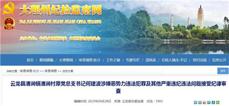 云龍縣漕澗鎮(zhèn)漕澗村原黨總支書記何建波涉嫌惡勢力違法犯罪及其他嚴(yán)重違紀(jì)違法問題接受紀(jì)律審查