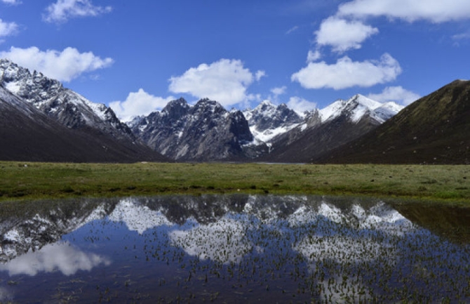 在年保玉則,雪山與湖泊相映成畫(2019年5月21日攝)。新華社記者 張宏祥 攝