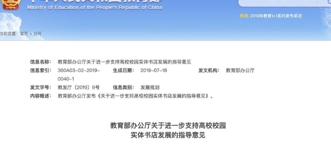 7月24日,教育部辦公廳發(fā)布《關(guān)于進(jìn)一步支持高校校園實(shí)體書店發(fā)展的指導(dǎo)意見》(簡(jiǎn)稱《意見》)。