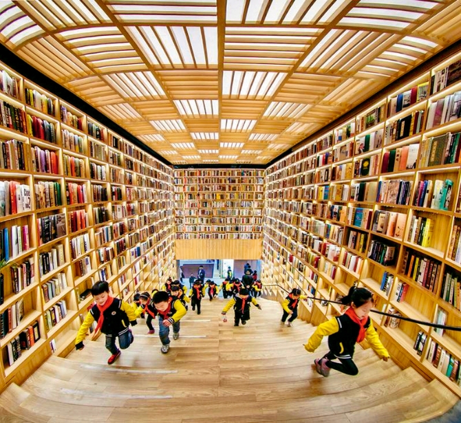 以文化人、以文育人、以文培元,高質(zhì)量發(fā)展才有強(qiáng)勁的動(dòng)力、旺盛的活力。圖為2019年4月27日,江蘇省宿遷市泗洪縣裝飾一新的新華書(shū)店,百余名天真可愛(ài)的小學(xué)生在家長(zhǎng)的帶領(lǐng)下,高興地奔向書(shū)的海洋。 中新社發(fā) 張連華/攝