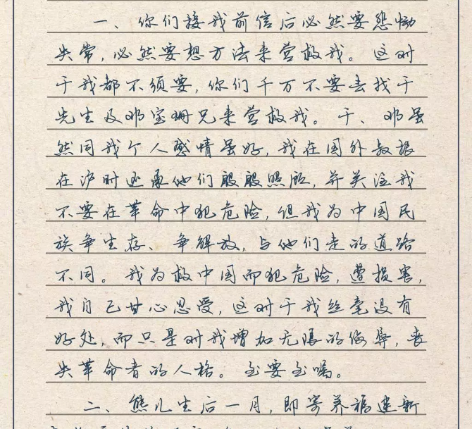 劉伯堅為三個幼兒所設(shè)想的人生之路,不是追求大富大貴、功成名就,而是希望“最重要的,諸兒要繼續(xù)我的志向,為中國民族的解放努力流血,繼續(xù)我未完成的光榮事業(yè)?!痹诮o妻子的絕筆信中,劉伯堅亦不忘囑托把孩子養(yǎng)育成人,希望愛人“用盡一切的力量教養(yǎng)虎、豹、熊三幼兒成人,繼續(xù)我的光榮的革命事業(yè)。”