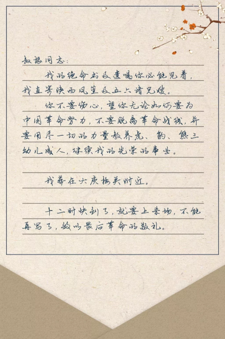 最后一封信是劉伯堅寫給愛人王叔振的,信是這樣寫的: