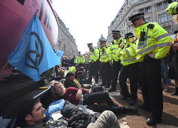 今年4月,倫敦氣候變化活動(dòng)人士發(fā)起街頭抗議。據(jù)英國廣播公司(BBC)報(bào)道,抗議活動(dòng)持續(xù)3天,抗議者散布在滑鐵盧橋、議會(huì)廣場等地,現(xiàn)場人山人海、水泄不通。超過55條公交線路被迫改道,影響50萬人的出行。
