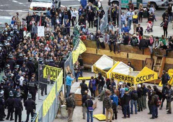 紐約近年來影響最大的警察“清場”行動(dòng),自然是對“占領(lǐng)華爾街”運(yùn)動(dòng)大本營的清場。2011年9月17日,上千名示威者聚集在美國紐約曼哈頓,試圖占領(lǐng)華爾街,他們帶著帳篷,想把華爾街變成埃及的開羅解放廣場。組織者稱,他們的意圖是要反對美國政治的權(quán)錢交易、兩黨政爭以及社會(huì)不公正。