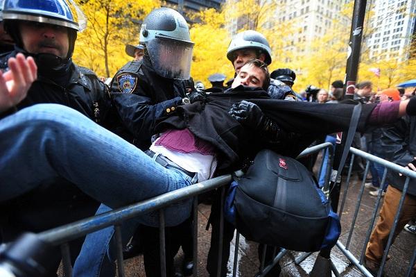 抗議活動(dòng)開始后,紐約警方就對其嚴(yán)加監(jiān)視。當(dāng)時(shí),包括時(shí)任總統(tǒng)奧巴馬在內(nèi)的民主黨政要有意借助這股力量,推動(dòng)加強(qiáng)金融監(jiān)管并為連任造勢,自由派媒體對運(yùn)動(dòng)也持同情態(tài)度。在這種情況下,雖然有些示威者因穿過警察設(shè)置的路障、阻礙交通、不遵守秩序等原因遭警方逮捕,但總的來說警方執(zhí)法比較溫和。