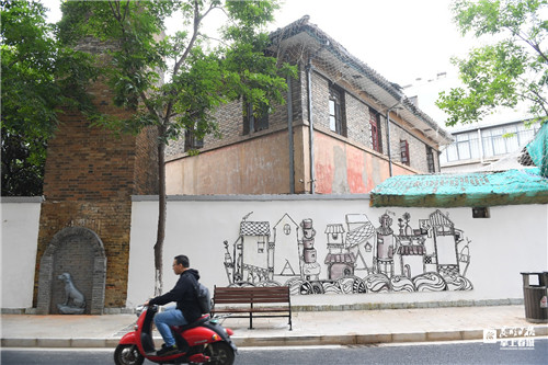 在逛“村”的過程中,記者看到不時(shí)有市民停下來拍照,有個(gè)姑娘邊拍邊評價(jià):“可以媲美馬來西亞檳城的墻畫了!”