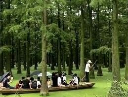 視頻中,一船游人泛舟“水上森林”,小船悠悠蕩蕩,從水上輕滑而過。高大的水杉為游人編制了天然屏障,蟬鳴聲聲,綠蔭蔽日,讓綠林顯得格外清幽、靜謐。十幾秒的視頻配合舒緩的音樂,一幅綠意盎然的盛夏風(fēng)光,呈現(xiàn)在全球網(wǎng)友面前。