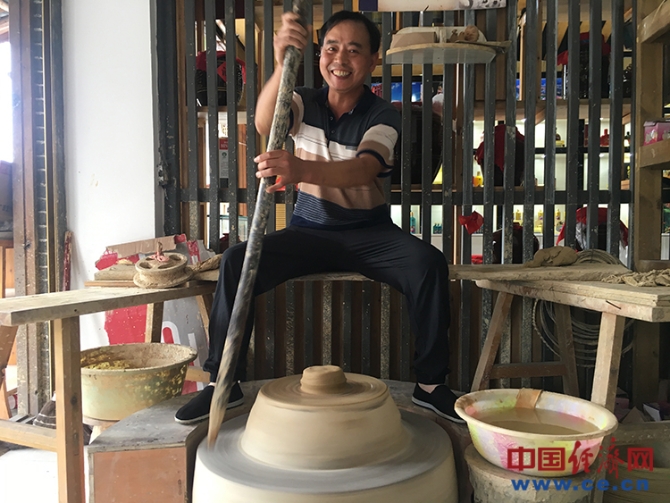 現(xiàn)在,母先才是花茂村唯一還在做陶的人。他告訴經(jīng)濟日報-中國經(jīng)濟網(wǎng)記者,他家中四代做陶,他自己也已經(jīng)做了38年的陶。