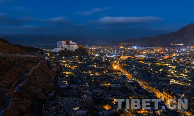 圖為日喀則市夜景 攝影:趙耀