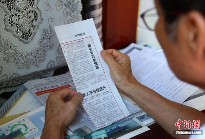 平時(shí), 陳才根也喜歡在家中看報(bào),看到喜歡的內(nèi)容都會(huì)進(jìn)行剪報(bào)。劉占昆 攝