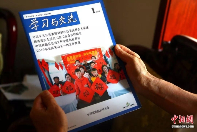 陳才根在家中接受中新社記者采訪,暢談自己的鐵路工作經(jīng)歷。劉占昆/攝