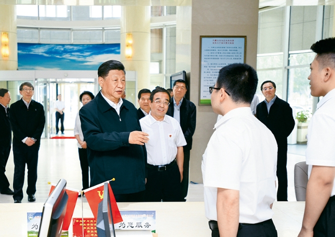 2019年7月15日至16日,中共中央總書記、國家主席、中央軍委主席習近平在內(nèi)蒙古考察并指導開展“不忘初心、牢記使命”主題教育。這是16日上午,習近平在內(nèi)蒙古自治區(qū)自然資源廳自然資源政務大廳同工作人員交談,了解開展主題教育和落實便捷高效政務服務等情況。 新華社記者 謝環(huán)馳/攝