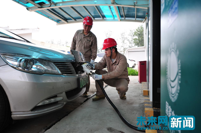 在京津塘高速徐官屯服務(wù)區(qū)的電動汽車充電站,電動汽車車主正在為汽車進(jìn)行充電。運(yùn)用大數(shù)據(jù)和互聯(lián)網(wǎng)技術(shù),打開“e充電”手機(jī)App,即可查看充電情況、進(jìn)行結(jié)算,和查找下一最近充電站等。