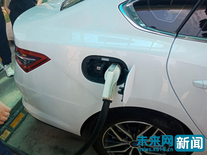 電動汽車車主正在為汽車進(jìn)行充電。未來網(wǎng)記者 劉文靜 攝