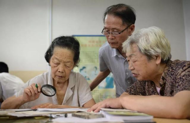 2015年7月22日,吳合用放大鏡閱讀病人帶來的檢查結(jié)果。
