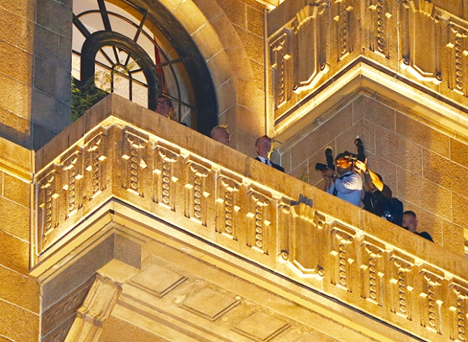 7月30日,劉鶴副總理與美國(guó)貿(mào)易代表萊特希澤、財(cái)政部長(zhǎng)姆努欽登上了和平飯店九樓的露臺(tái)共覽浦江。(01:00)