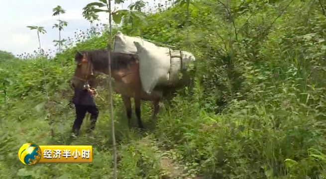 但是在往年,就算藥材的漲勢再好,村民也高興不起來。因為想要將藥材運出去,只能靠肩挑背扛一二百多里路,人力成本非常高。一斤藥材背下山就要5角錢,每人一次只能背七八十斤,人力運輸成本占賣價的三分之一。羅盤村村民陶化中是藥材種植大戶,家里有一千畝的藥田,即便用馬馱,碰到不好走的陡坡,馬也會出現(xiàn)滾下山的情況。