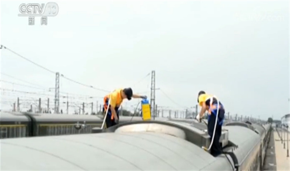 央視網(wǎng)消息:現(xiàn)在正值全國鐵路暑運時期。每年暑運期間也是內(nèi)蒙古的旅游旺季。旅客列車處于滿負荷運行狀態(tài)。為了讓旅客能在列車上享受清涼,必須要確保列車空調(diào)正常運行。在呼和浩特鐵路局包頭車輛段就有這樣一些空調(diào)維修工。他們每天要頭頂烈日,在列車頂上檢修列車空調(diào)。
