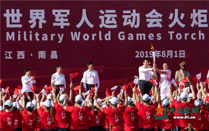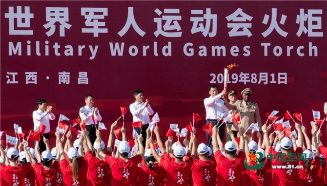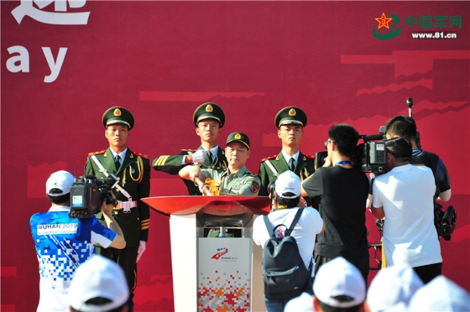 這來自人民軍隊(duì)誕生地的火種,點(diǎn)燃了安放在八一南昌起義紀(jì)念塔前的圣火盆,隨后由國際軍事體育理事會(huì)秘書長曼比·科伊塔點(diǎn)燃第一支火炬。