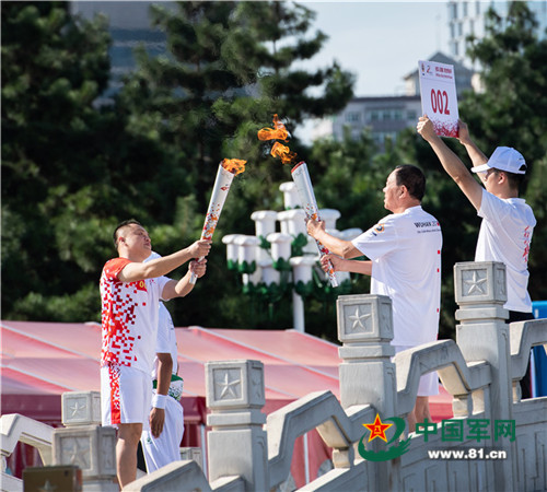 軍運(yùn)會(huì)火炬?zhèn)鬟f儀式現(xiàn)場。鄭文達(dá) 攝