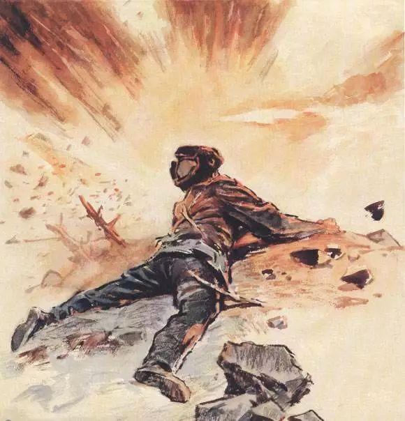 黃繼光冒著槍林彈雨,帶著兩名戰(zhàn)友,在我軍火力掩護(hù)下,向0號(hào)高地沖去。