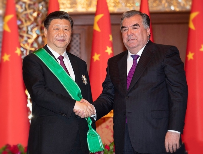 6月15日,習近平主席在杜尚別接受塔吉克斯坦總統(tǒng)拉赫蒙授予的“王冠勛章”。兩國總統(tǒng)分別向習主席授予各自國家最高獎?wù)?,感謝習近平主席為發(fā)展吉中、塔中關(guān)系所作的卓越貢獻。