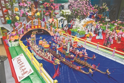 “這些作品孩子們做了差不多一個(gè)學(xué)期?!惫G紅說,其實(shí)孩子們做的巧品還不止這一個(gè),另一件相同主題的巧品比這個(gè)大一半之多,目前在其他地方展出。另外,在這張小供桌之旁還有一個(gè)龍船飯的作品,也是由小學(xué)生們制作而成。(廣州日報(bào) 全媒體記者秦松)