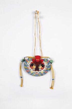 清代藍(lán)緞繡花蝶荷包。